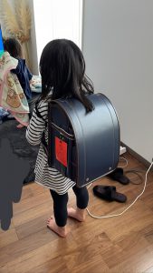 その日の夕飯はランドセルを背負って食べていました(笑)