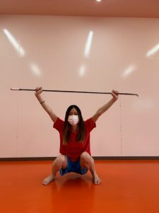 3 バーの位置を変えずに深くしゃがみ、立ち上がる