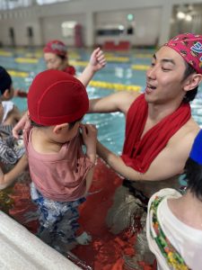 レッスン終盤には、濡れた服を脱ぐことにも挑戦しました。ちょっと難しかったね。