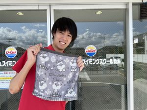 📷「参加者の皆さんとお揃いのタオルです!僕の出張授業デビューの思い出になりました!嬉しい!!!」とポールコーチ