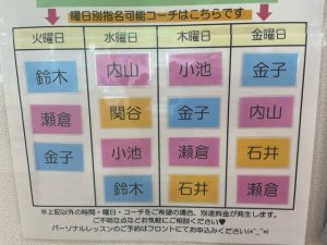 ずっと同じコーチ指名の方、普段一緒にスクールに