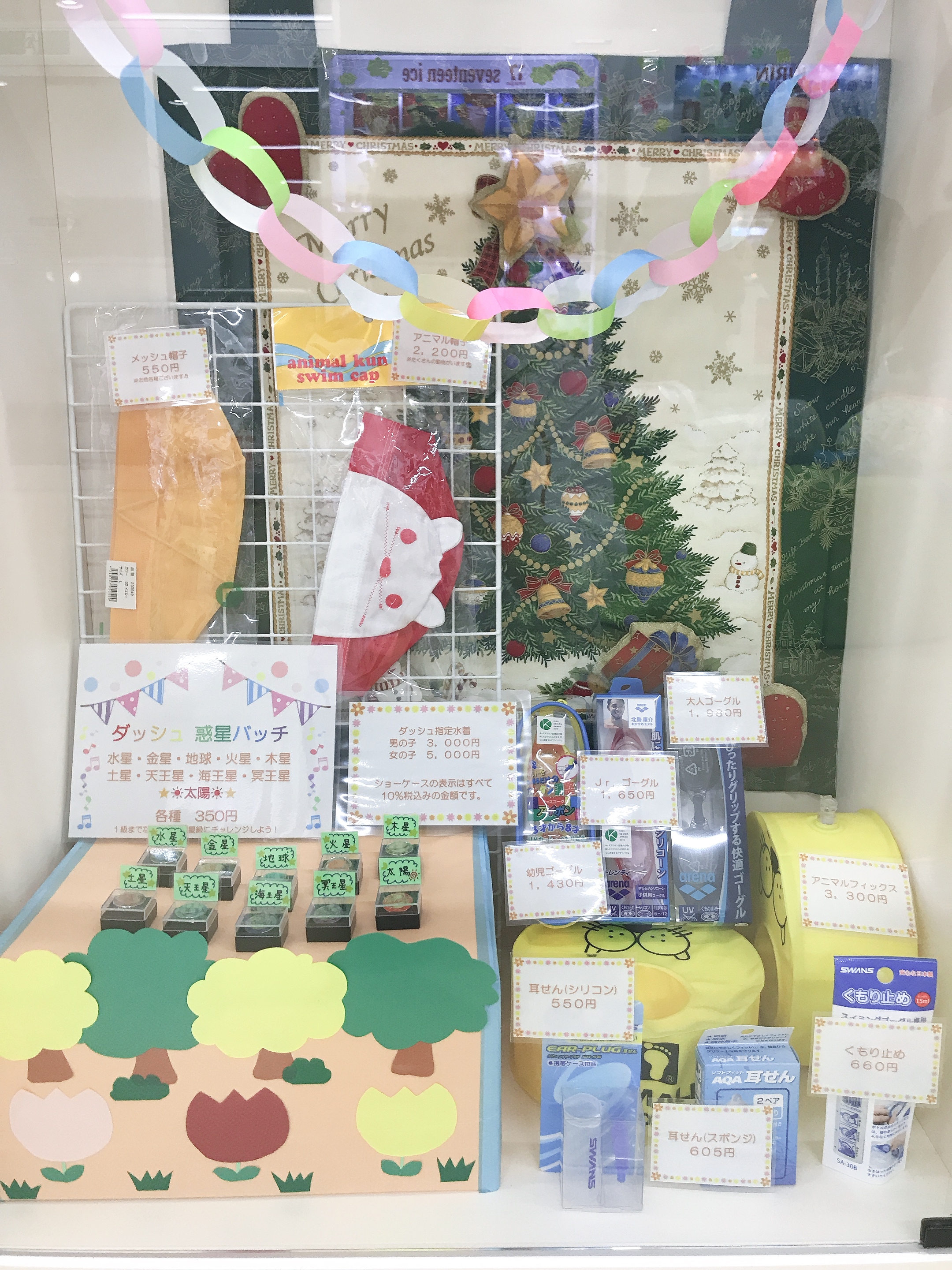 燕校の物販も会員さんからいただいたタペストリーでクリスマス仕様になっています