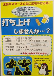 5月にまたマスターズ大会があるので今回参加できなかった方はぜひ参加して、打ち上げも皆さんで行きましょう