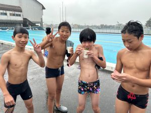 お盆合宿 月月日(火) こんにちはミーシャです 現在、選手コースの中高生は塩沢で合宿を行っています! 普段はなかなか練習することができない屋外の50mプールで泳ぐことができるのでいい経験になります 差し入れのかき氷にテンションが上がっていました 明日で合宿が最終日です! 晴れることを願っています 以上、合宿が大好きなミーシャでした
