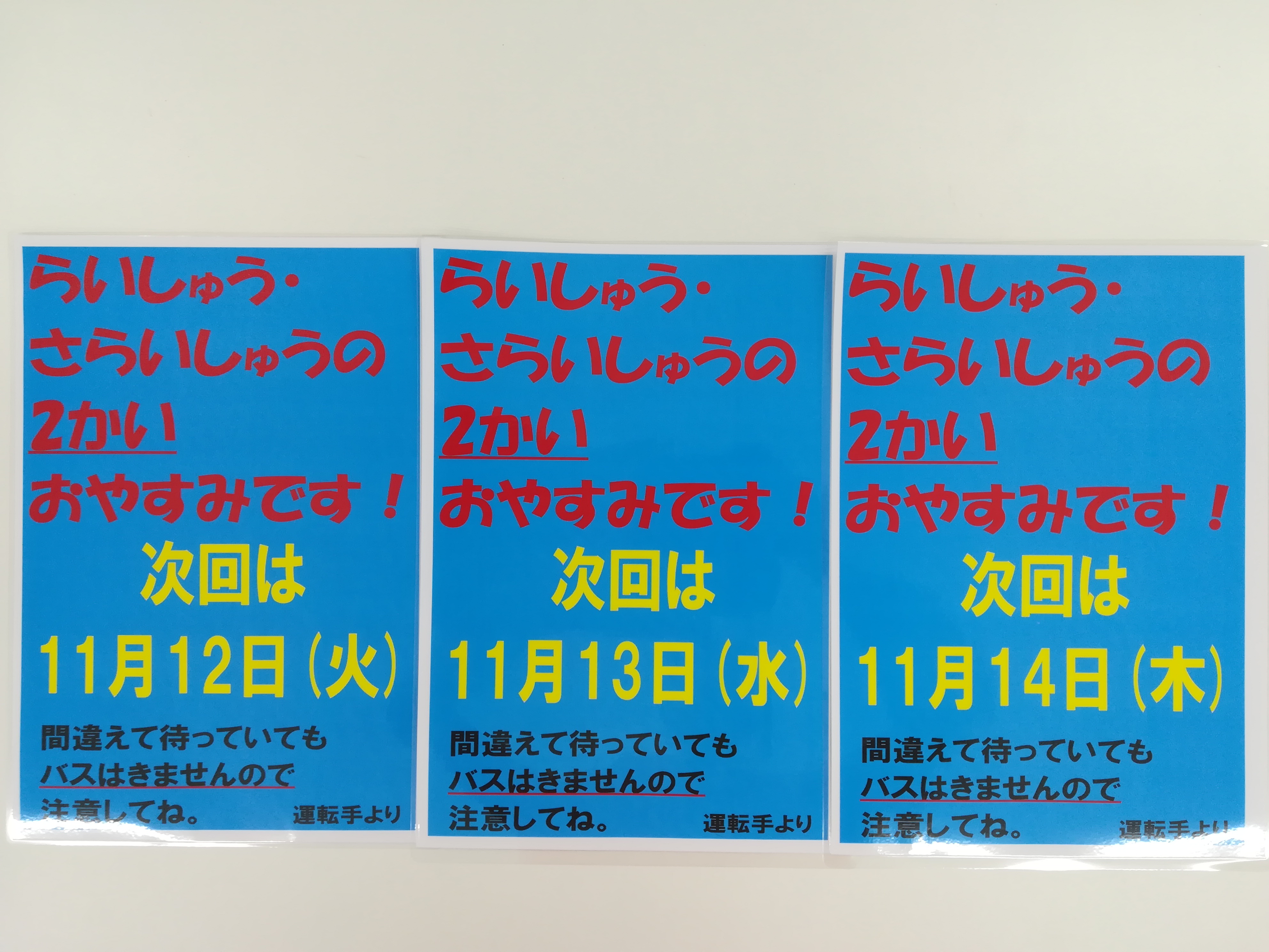くり返しになりますが、お休みの日にダッシュバスを待っていてもバスは来ませんので、