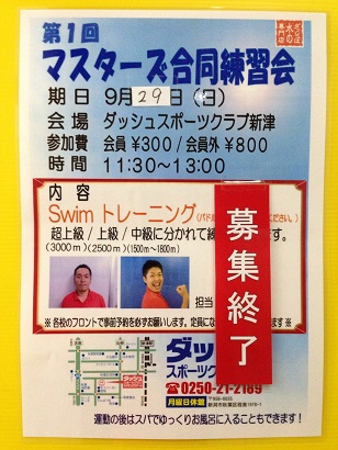 さて、10月29日(日)に新津校で『マスターズ合同練習会』を行います。