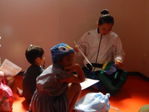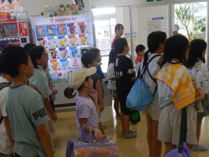 お土産の缶バッチを貰って嬉しそうな表情がたくさんありました