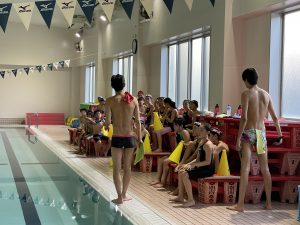 コーチの話を真剣に聞き、仲間が泳いでいるときはみんなで応援をする!!!
