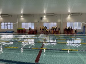 コーチの話を真剣に聞き、仲間が泳いでいるときはみんなで応援をする!!!