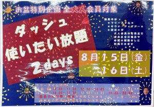 まだまだ暑さが続きますので、今年のお盆は是非ダッシュでリフレッシュしてください♪