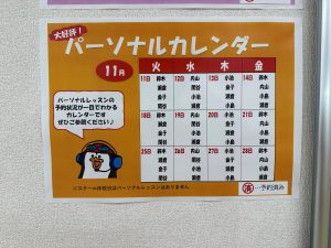 そして、11月のパーソナルレッスンカレンダーも貼り出されています。