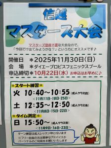 この大会は毎年会場が新潟県か長野県のどちらかで開催されますが、今年は長岡のダイエープロビスフェニックスプールで開催されます