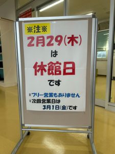 来週の2/29(木)は休館日となりますひらめき
