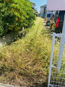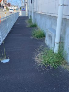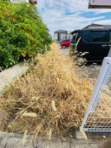 夏の間に生い茂ったダッシュ敷地内の草刈り&除草剤散布です