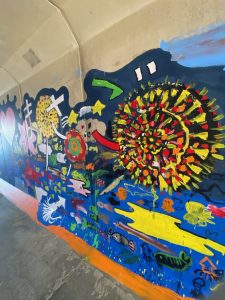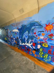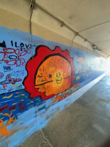 先日、毎日の日課である海辺へのウォーキングに行く途中、小さな歩行者専用トンネルがあるのですが突然そのトンネルの壁に芸術家顔負けの素晴らしい絵が描かれていました✨