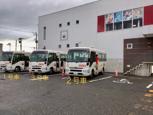 バスは写真のようにダッシュの入り口から近い順に 2号車 3号車 1号車