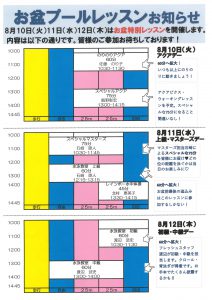 プール お盆特別レッスンを開催しています。