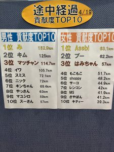 男女別TOP10を貼り出させてもらっています! ↓↓↓