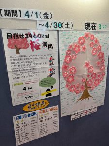 有酸素運動(エアロバイク・トレッドミル)で距離を稼ぎ、会員皆様で3960Km(サクラ)🌸を目指していきます。