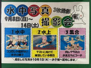 9/8(日)から水中写真撮影会が始まります!!