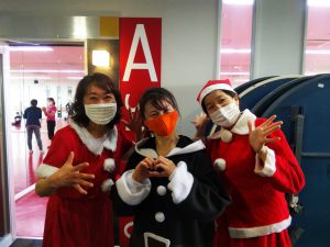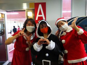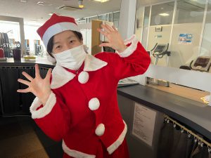 シエロコーチもサンタ姿でジムお出迎え♪ 全身コーデでお似合いですね。