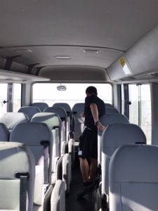 ダッシュでは、スクール生をバスから降ろしたあとは必ず最後尾までいき、忘れ物がないか、寝てる子は居ないかなど確認を行っています。