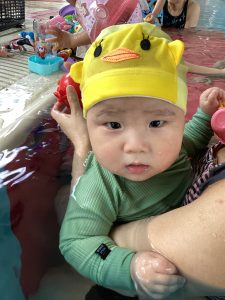 初めてのダッシュでも全く泣かず、日に日にお水の中を楽しんでくれています