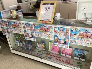 玄関前にはのぼりが立ち、玄関入るとチラシ攻撃