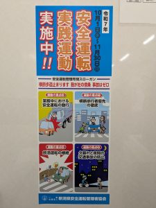事故が起こりやすいこの時期、安全運転実践運動が実施中です。