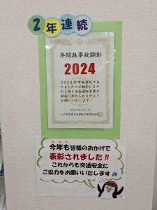 ダッシュに来られる皆さんで今年も目指せ年間無事故顕彰。