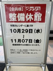 10月29日(水)から11月7日(金)は、年間カレンダーに基づき整備休館となっております。