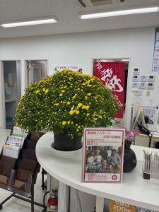 会員の方が菊を持ってきてくれました。フロントが一気に秋らしくなりました。