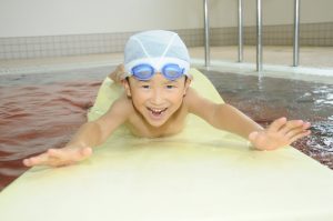 夏、学校の水泳授業で水に慣れた子ども達。