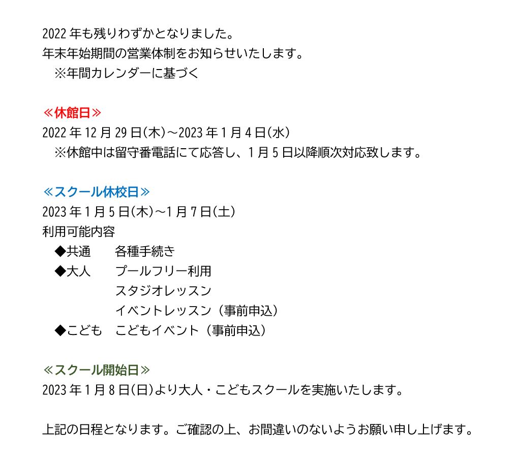 【新潟校】年末年始休館・休校のお知らせ
