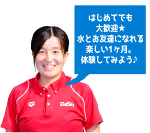 下記の期間、ダッシュスイミングスクールを無料で1日体験していただけます。