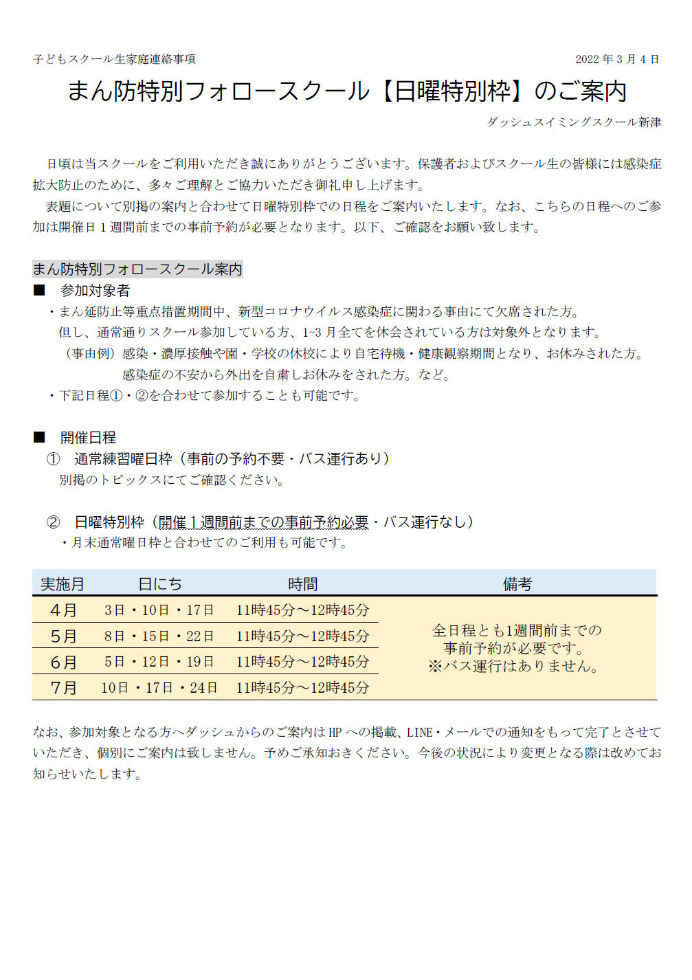 2.【新津校】まん防特別フォロースクール(日曜日枠)のご案内